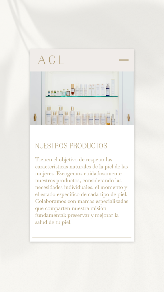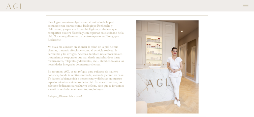 This web design project for AGL reflects the center’s sophisticated approach to holistic skin care, emphasizing personalized treatments and the harmony between inner well-being and outer beauty. Inspired by its white-and-gold branding, the design balances minimalism with luxury.